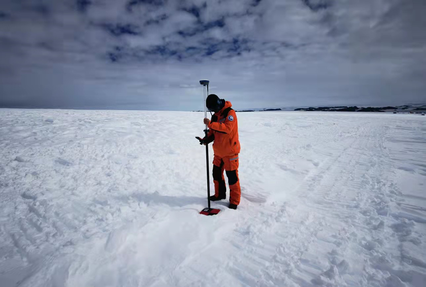 The GNSS control points in the station area were observed again in this scientific expedition, providing centimeter-level accuracy elevation data for subsequent scientific research tasks; High-resolution orthophoto image and ice thickness information were obtained, using UAV and airborne ground penetrating radar, to provide data support for expedition decision-making and operation; Based on airborne optical, laser and thermal infrared sensors, continuous observations of sea ice, crevasses, melting pools and icebergs in the Gulf of Nella were made; Orthophoto images and digital elevation data of the Dålk Glacier ice pit, Concorde Peninsula and departure base were obtained; During Xuelong's voyage, observations of sea ice density and thickness, as well as GNSS data collection, were carried out continuously.