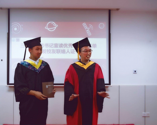 随后,党委书记楼立志老师宣读了2018届本科优秀毕业生名单,并为校友联络人杨乾峰同学颁发校友联络人聘书。楼书记祝贺大家顺利完成学业,希望大家无论未来身在何方,都能够永远铭记在同济测绘的这段宝贵时光,也希望大家能够常回家看看,性爱视频