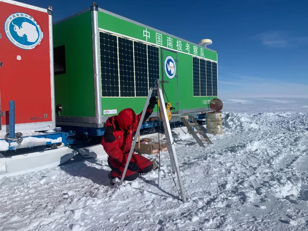 此行,他们围绕实现中山站、泰山站、昆仑站沿线及周边冰盖、冰川的物质平衡与全球海平面变化贡献关键参数(冰流速、冰物质流失、冰/雪下温度)等主题开展研究。主要工作内容包括:内陆科考沿线多基站分段式长距离车载GNSS测量;单光子测高卫星ICESat-2地面测高精度验证;应用卫星角反射器进行南极长时间冰流速实地监测等。
