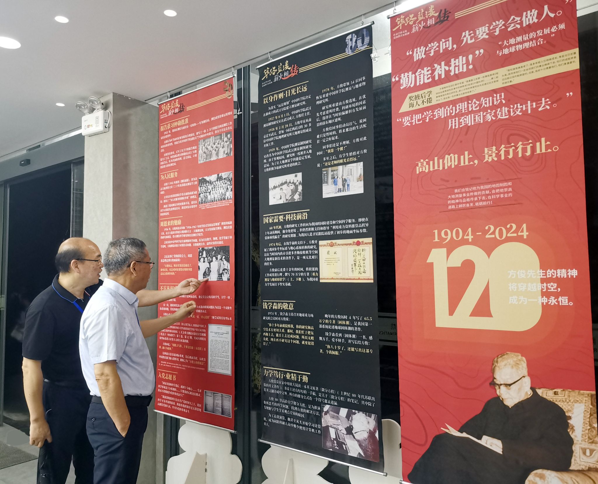 测绘馆一楼大厅参观了“筚路蓝缕 薪火相传——领域开拓者科学家精神人物展:方俊院士展”。