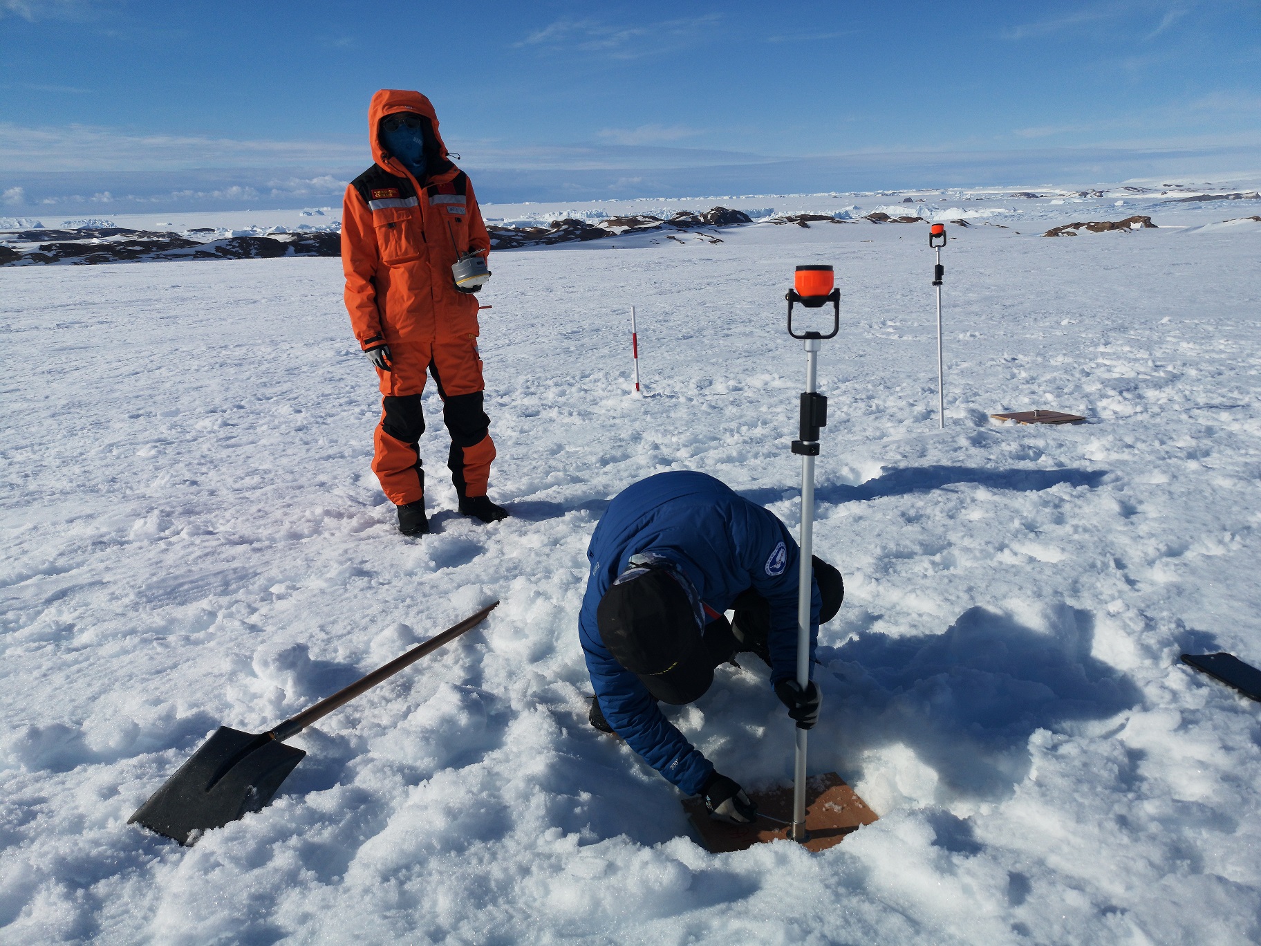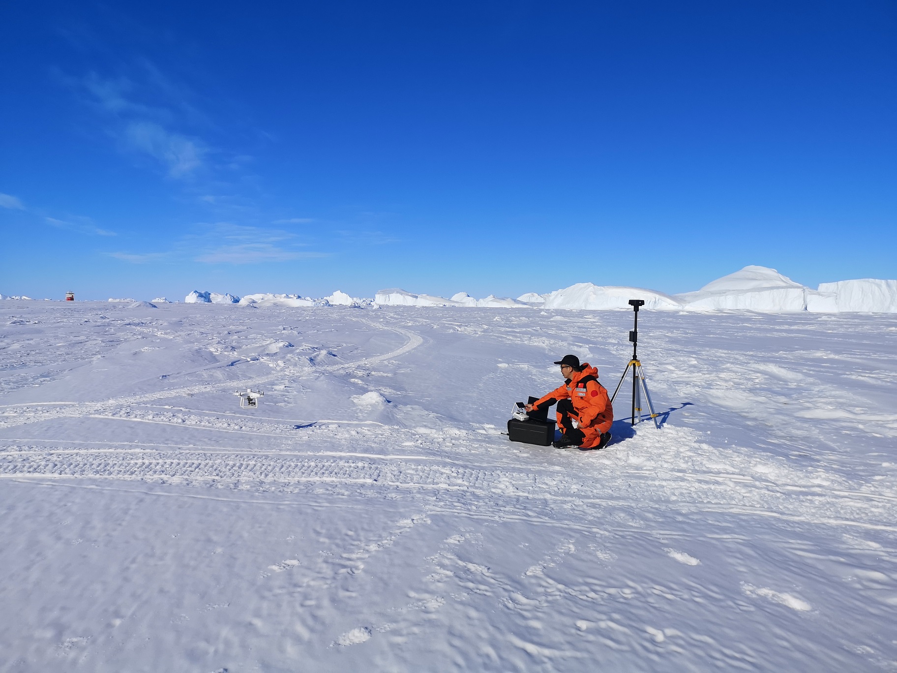 郝彤教授在泰山站铺设了新型单光子极地测高卫星的光子检测靶标;开展了新型无人机载探冰雷达南极飞行测试,为海冰厚度测量、冰下浅层结构及冰裂隙探查提供了一种新方法;安装并维护了角反射器和目前我国在南极安装的最大深度的可连续观测、能提供雪面下20米深的连续温度观测数据的温度链;采集了多条车载冰雷达测线;获取了泰山站区3*3公里的无人机正射影像及数字高程数据,积累了泰山站区的影像数据。
