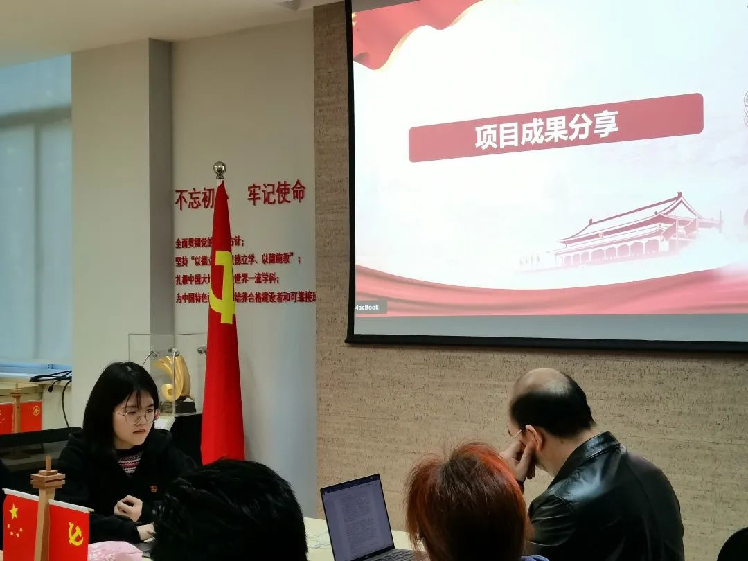 在经验分享环节,本科党支部副书记谢光顺同志和研究生第四党支部组织委员裴晓雯同志分别分享了支部上学期“对标争先”项目建设相关内容。