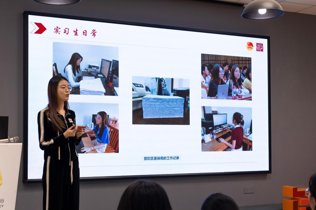 “智慧城市”是运用物联网、云计算、大数据、空间地理信息集成等新一代信息技术,促进城市规划、建设、管理和服务智慧化的新理念和新模式。李嘉琪和陆晓熠都在实践过程中观察到,如何让“智慧城市”切实服务于广大群众,亟待关注和探讨。以电子医保为例,在线平台能够让医保服务更精细、更高效,但陆晓熠在调研中发现,由于大部分老年群众的信息获取能力较弱,他们对线上医保手续办理等便民服务并不了解。对此,上海市普陀区医保局有针对性地筹备了“医靠e行,普保民情——数字医保沉浸式体验服务”政府公开日活动,陆晓熠也参与到活动的前期筹备工作之中。开放日当天,医保工作人员现场教学“一网通办”线上服务,引导公众参观医保文化走廊、24小时自助服务区等,并发放问卷,听取群众反馈。基层工作便是在平凡中奉献,在奉献中坚守,切实将“智慧城市”的一项项服务落实到人民当中。