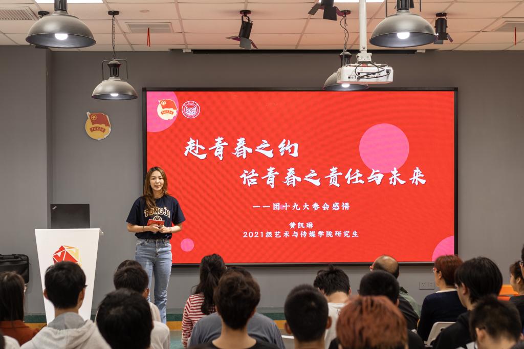 宏伟蓝图催人奋进,青春使命无上光荣。黄凯琳特别讲到,通过参加这次大会,她再次深切感受到党的十八大以来,以习近平同志为核心的党中央高度重视青年、热情关怀青年、充分信任青年,对青年工作倾注了大量心血。她从“厚植家国情怀、涵养进取品格”“躬身万里征程、发扬斗争精神”“胸怀远大理想,勇立时代潮头”三方面分享参会和学习心得,鼓励同学们以青春的意志、热血、实干,为强国建设、民族复兴挺膺担当、团结奋斗。